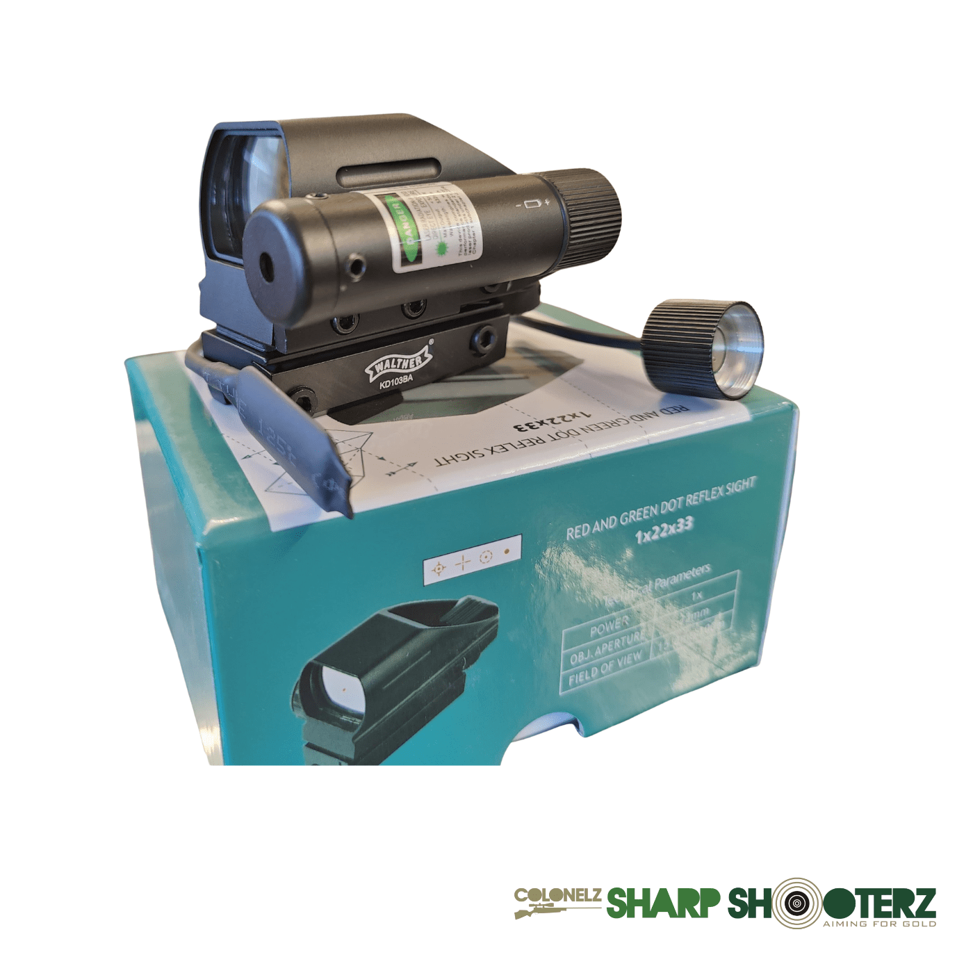 Be the first to review “Walther Red & Green dot reflex sight 1X22X33”