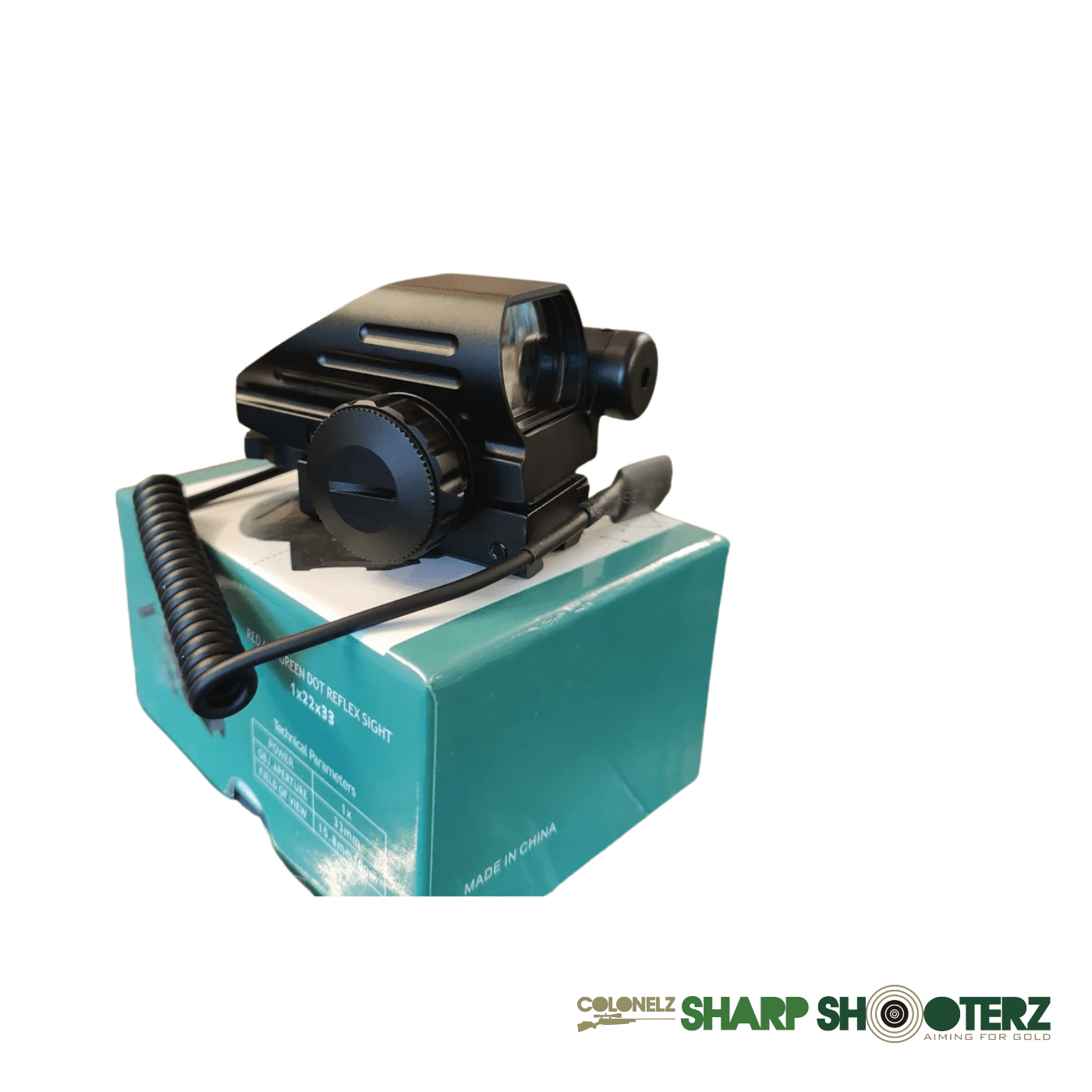 Featuring dual illuminated reticles in red and green, the sight allows shooters to adapt quickly to different lighting conditions. The wide 22×33 mm lens provides a clear and expansive field of view, making it ideal for rapid aiming and dynamic shooting situations.
